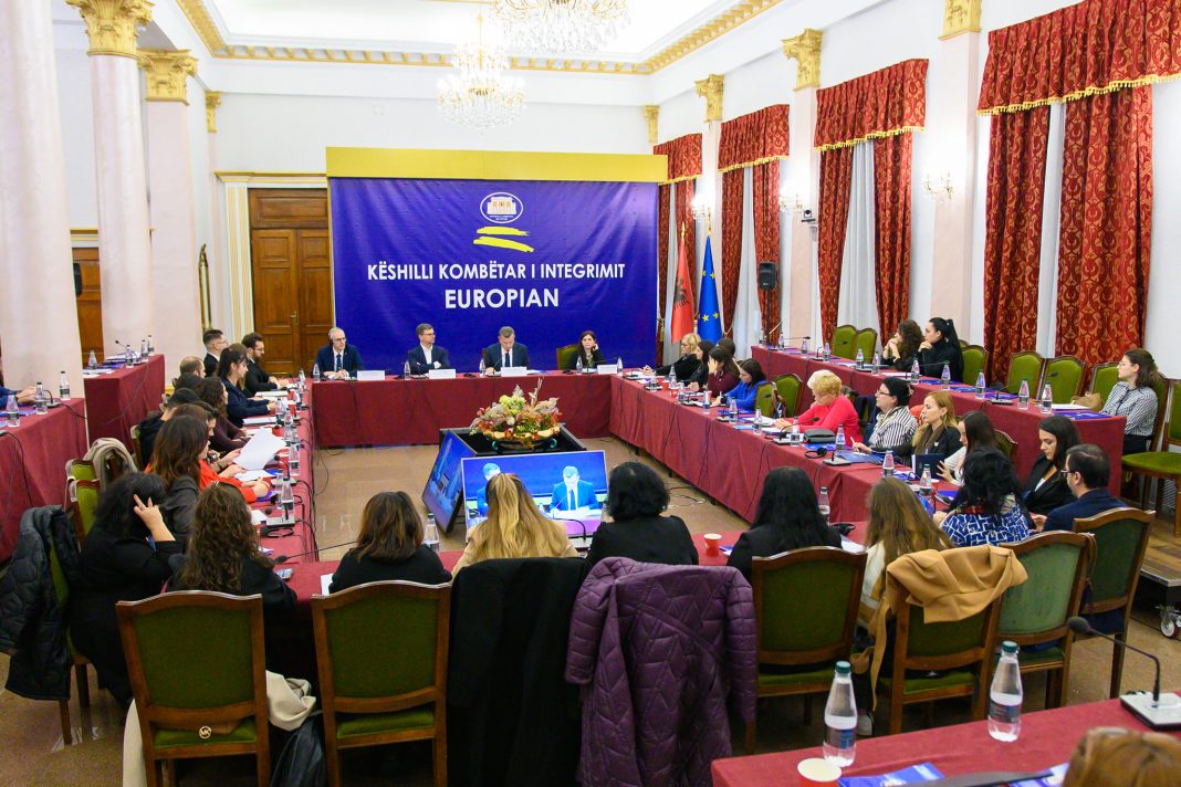 Miercuri, Consiliul Național pentru Integrare Europeană (CNIE), în cooperare cu Mișcarea Europeană Albania (EMA), în cadrul Convenției Naționale pentru Integrare Europeană, a organizat o întâlnire de conștientizare cu reprezentanți ai instituțiilor, ai lumii academice și ai organizațiilor societății civile, parte a CNIE. Întâlnirea s-a concentrat pe problema drepturilor omului, a statului de drept și a responsabilității instituționale. La întâlnire a participat și dna Binjaku, șefa Fundației HM. Întâlnirea a avut loc la Președinția Parlamentului, în sala Grupurilor Parlamentare. Consiliul Național pentru Integrare Europeană (CNIE), în colaborare cu Mișcarea Europeană Albania (EMA), în cadrul Convenției Naționale pentru Integrare Europeană, a organizat o întâlnire de conștientizare cu reprezentanți ai instituțiilor, ai lumii academice și ai organizațiilor societății civile, parte a KKIE. Activitatea a fost salutată de dl. Taulant Balla, vicepreședinte al Consiliului Național pentru Integrare Europeană, care, după ce a salutat invitații, a subliniat importanța întâlnirii într-un moment crucial al procesului de integrare europeană a țării, când Albania a deschis oficial toate capitolele de negocieri cu Uniunea Europeană. Întâlnirea a fost salutată, de asemenea, de dl. Gledis Gjipali, Coordonatorul Convenției Naționale pentru Integrare Europeană din Albania/Director Executiv al Mișcării Europene din Albania, care a apreciat buna cooperare de-a lungul anilor cu KKIE, pentru abordarea unor probleme specifice și sensibile pentru societatea albaneză și calea transformatoare pe care o va aduce acest proces. Subliniind rolul pe care societatea civilă îl are în aducerea preocupărilor sau sugestiilor diferitelor părți interesate la principalele instituții din procesul de integrare europeană, dl. Gjipali a apreciat munca depusă de Parlament pentru crearea unei platforme interactive de consultare publică. Întâlnirea a fost salutată de dl Ivan Štefanec, fost deputat slovac și europarlamentar, care a lăudat progresele înregistrate de Albania și a subliniat importanța sprijinului cetățenilor albanezi în vederea viitorului țării în cadrul UE. Dl Štefanec a subliniat importanța consolidării rolului Parlamentului în monitorizarea procesului de negociere și a activității guvernului, dar și în avansarea procesului. Apreciind realizările obținute prin reforma justiției și inițiativa luată pentru a crea primul portofoliu guvernamental virtual, activat de inteligența artificială, care va fi responsabil pentru toate achizițiile publice, dl Štefanec a subliniat că, în ciuda realizărilor impresionante obținute, ar trebui acordată în continuare atenție independenței sistemului judiciar și respectării drepturilor omului, libertății mass-media, asigurării accesului tuturor cetățenilor la serviciile online și consolidării responsabilității și garantării transparenței instituționale. În a doua parte a întâlnirii, dna Nirvana Deliu, directoarea de proiect a Mișcării Europene din Albania (EMA), a prezentat mai multe recomandări rezultate în urma consultărilor cu societatea civilă și experți pe teme legate de drepturile omului, cum ar fi: abordarea problemei hărțuirii în mass-media online, necesitatea unei mai bune alocări bugetare a instituțiilor independente pentru dezvoltarea capacităților resurselor umane etc. Activitatea a continuat cu întrebări și discuții deschise între participanți.